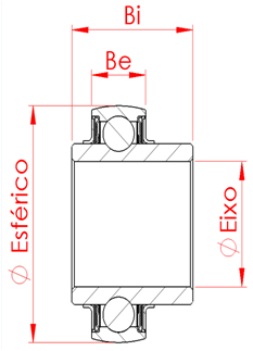 Rolamento | Ø Eixo (mm) | Ø Esférico (mm) | Be (mm) | Bi (mm) | Aplicações |